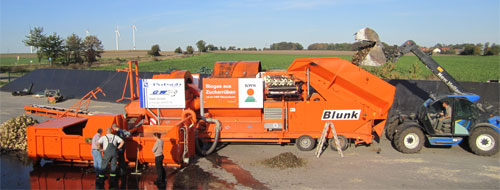 Herzstück der mobilen und überbetrieblich einsetzbaren Anlage ist ein Trommelstein-abscheider, der mit gleichem Prinzip auch in Zuckerfabriken zum Einsatz kommt. Vorgeschaltet sind eine Trockenenterdung und eine kurze Waschtrommel. „Mir ist nicht bekannt, dass die Anlage in den letzten beiden Kampagnen auch nur einen Stein durchgelassen hat“, berichtet Sebastian Schaffner, Berater Biogas im Vertrieb für Zuckerrübensaatgut bei KWS, überzeugt von der Technik. „Wir haben über den Sommer noch einige Punkte verbessert und ergänzt, um den Arbeitsablauf zu vereinfachen.“ So wurde z.B. ein automatisierter Bruchstückekratzer ergänzt, der Fremdkörper wie Rübenbruch oder Unkraut permanent aus dem Waschwasserkreislauf entfernt. Bereits jetzt stehen mehrere Tausend Tonnen Rüben zur Entsteinung auf dem Fahrplan, der sich wohl erneut bis ins Frühjahr 2012 erstrecken wird.