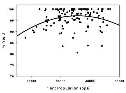 occur between 34,500 and 37,000 plants per acre (ppa); although