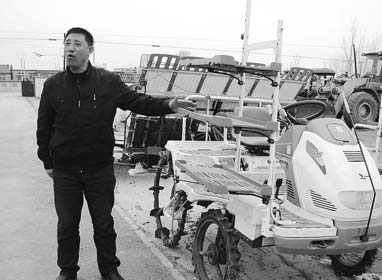 Yu Huihuai, a farmer from Liaozhong county, Liaoning province, with his planting machinery. Yu's agricultural machinery cooperative provided machinery services for nearly 2,000 hectares of croplands last year. Wu Yong / China Daily