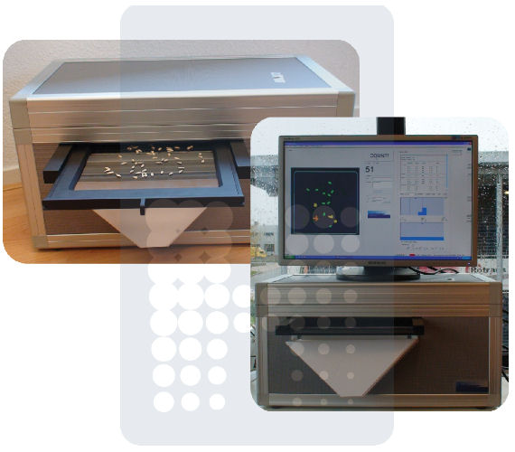 The IXEED seed analyser/ counter is our new visual seed counter. It is very easy to use because of the one button counting, no matter what kind of seed you use. Beside the counting it is possible to set several fractions and it gives you information about the difference in sizes of the sample.