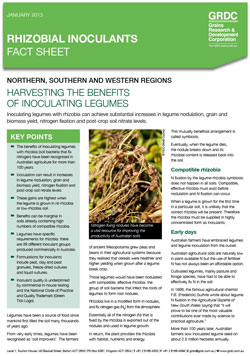 Included in the January-February edition of GRDC’s Ground Cover magazine, the Fact Sheet can also be viewed and downloaded via www.grdc.com.au/GRDC-FS-rhizobialinoculants.